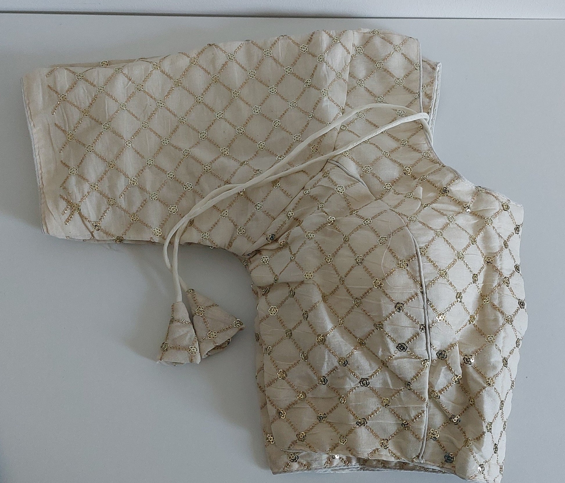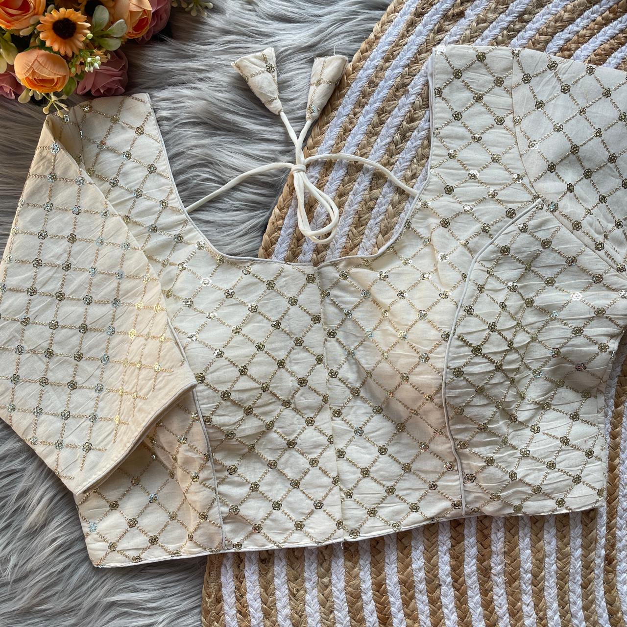Pure Khadi Embroidered Blouse with Front Open Hook (Free Size 38–42)